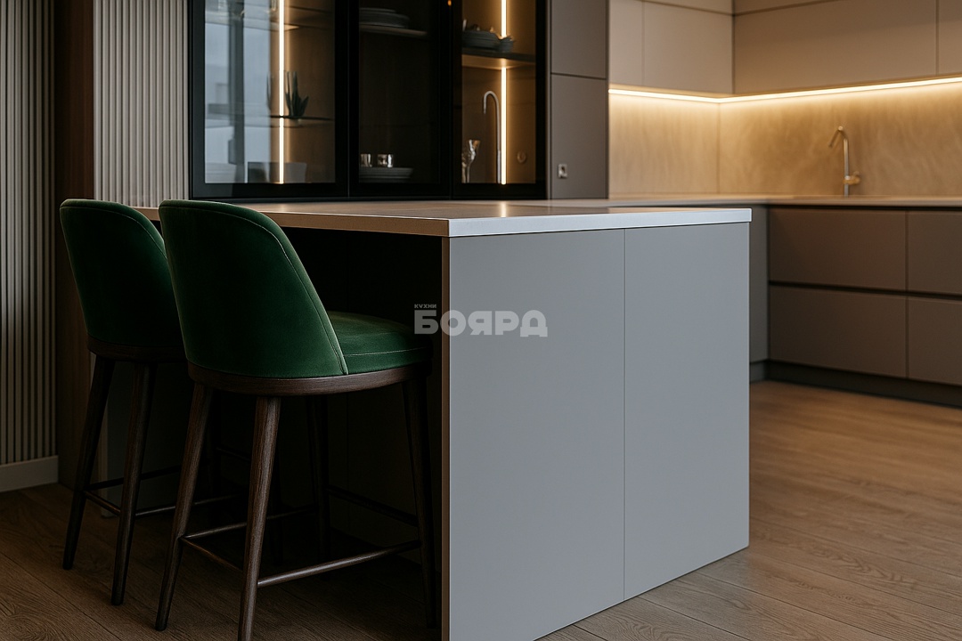 Корпус: ЛДСП УвадревФасад: МДФ Kastamonu 16 ммФурнитура: BoyardСтиль: П-образные